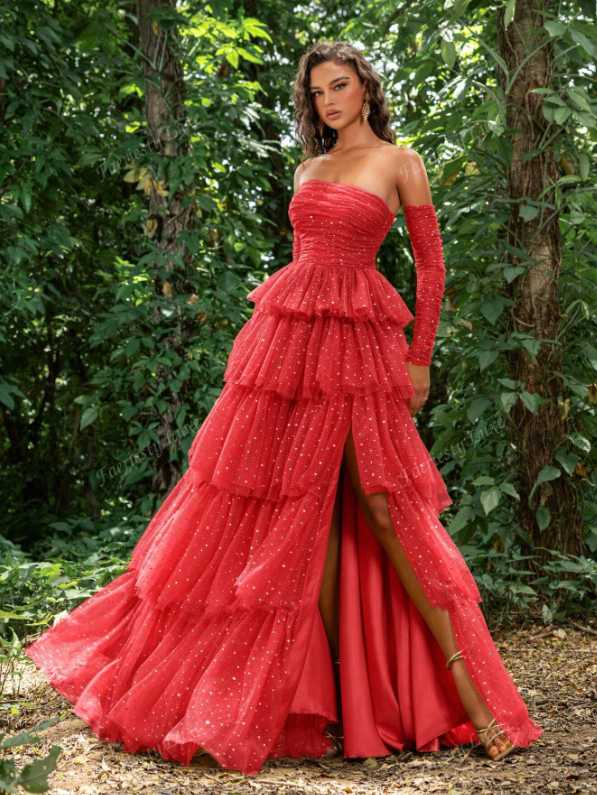 La tendenza più romantica della stagione si trova negli abiti da sera, in un tripudio di ruches, crinoline e balze su long dress dai volumi importanti e dalle tinte ultra pop. Ci saranno anche abiti dalle linee più pulite, ma arricchiti da una moltitudine di strass e pietre preziose multicolor.