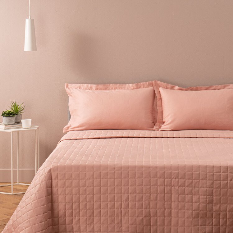 Copriletto trapuntato in raso cipria