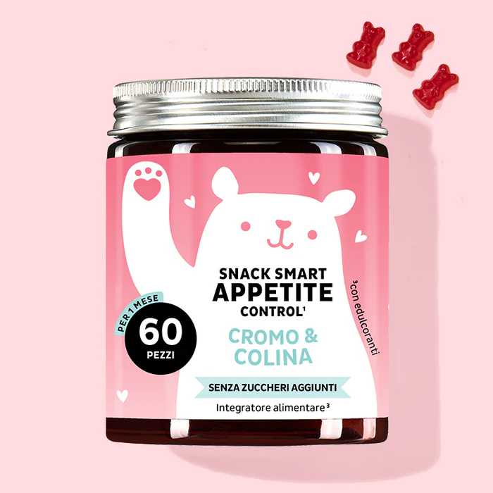 Avete presente la sensazione di fame e di voglia improvvisa di sgranocchiare qualcosa che capita a tradimento sia di sera sul divano che durante il giorno? Le vitamine per controllare il senso di fame Snack Smart con cromo e colina sono state appositamente sviluppate per aiutarvi a mantenere livelli normali di zucchero nel sangue. Snack Smart vi aiuterà a sentirvi sazi più a lungo e a ridurre la tentazione di fare uno spuntino tra i pasti. In più si tratta di deliziosi orsetti gommosi senza zucchero. Insomma può essere il vostro alleato quotidiano per ridurre il senso di fame in modo naturale e divertente. Prima di assumerle però CONSULTATE IL VOSTRO MEDICO DI FIDUCIA per verificare eventuali controindicazioni, allergie e/o intolleranze.